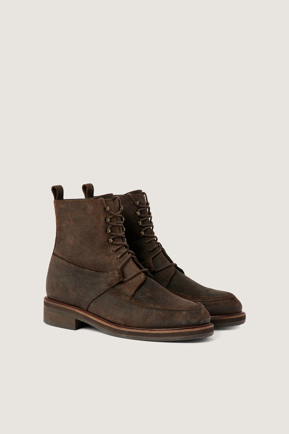 Charcoal oiled leather ankle boots - Lace-up high ankle boots- Natural oiled texture- Topstitch and cutout details- Metal hooks- Upper length: 14 cm- Heel height: 3 cm- LWG leather