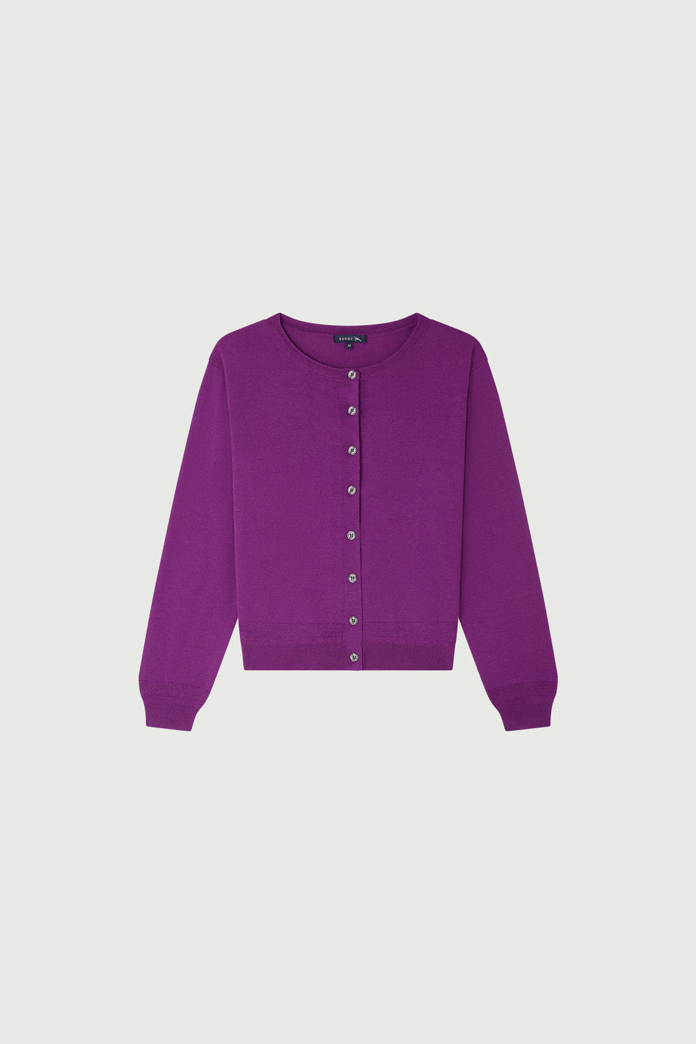 TITA is a short, boxy cardigan. It's knitted from fine merino wool, soft enough to wear against the skin or layered over other pieces. The sleeves and hemline feature a textured stitch that adds a unique touch. It pairs beautifully with high-waisted jeans or a sleek skirt.