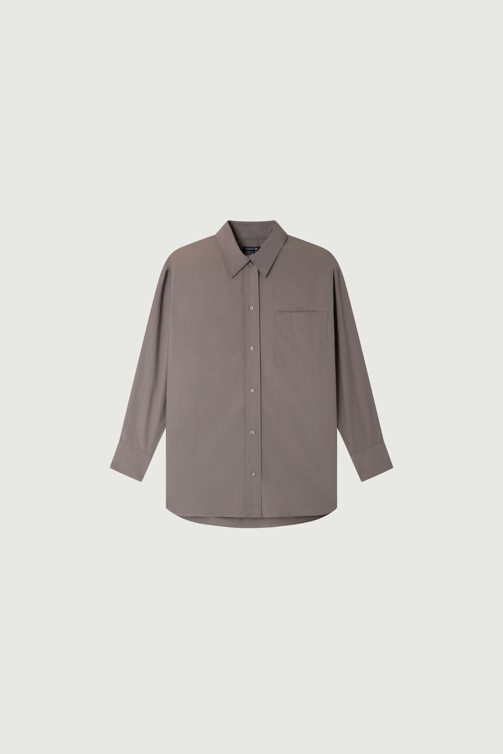 CARLOTTA is a grey poplin shirt with an oversized fit inspired by men's wardrobes, for a laid-back yet chic style.