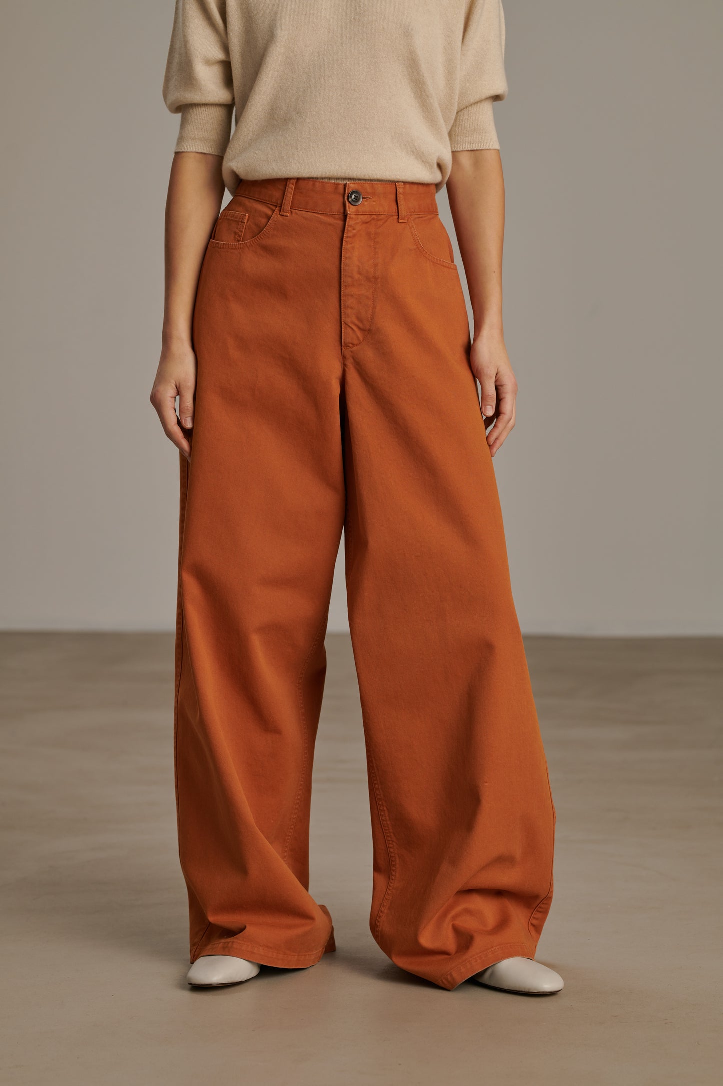 ALEXIS is a thick canvas trouser with a wide, flared fit. It has a relaxed style. It follows the line of Sœur's signature looks, where oversized is expertly crafted.