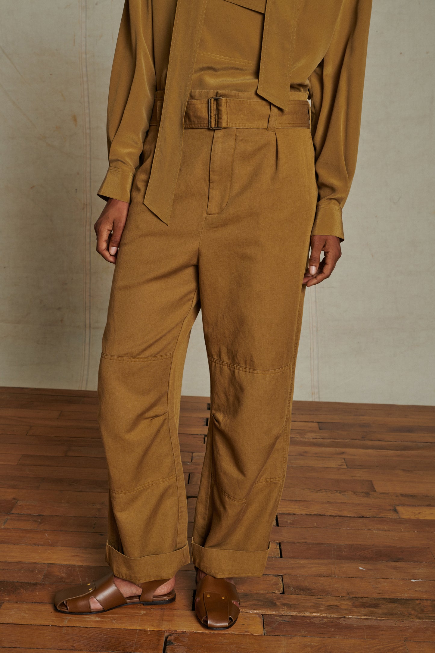 Soft linen and cotton cargo-style trousers bronze