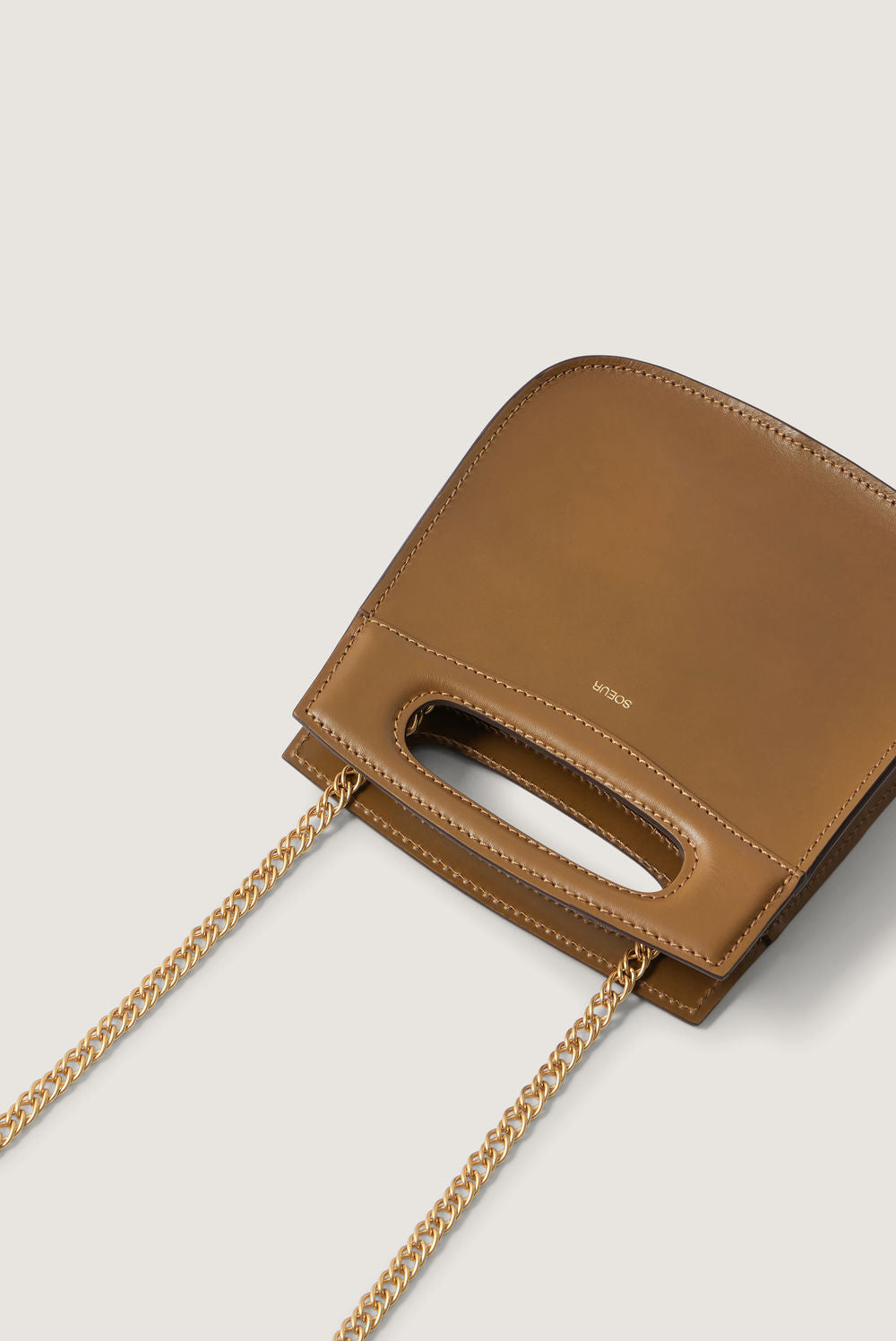 CHERI MINI is a scaled-down version of one of our iconic bags, recognizable by its distinctive oval handle. It can be carried by hand or worn across the body thanks to its slender golden chain. It's the perfect accent for a dressy outfit, while also being practical for everyday use when you only need to carry the essentials.