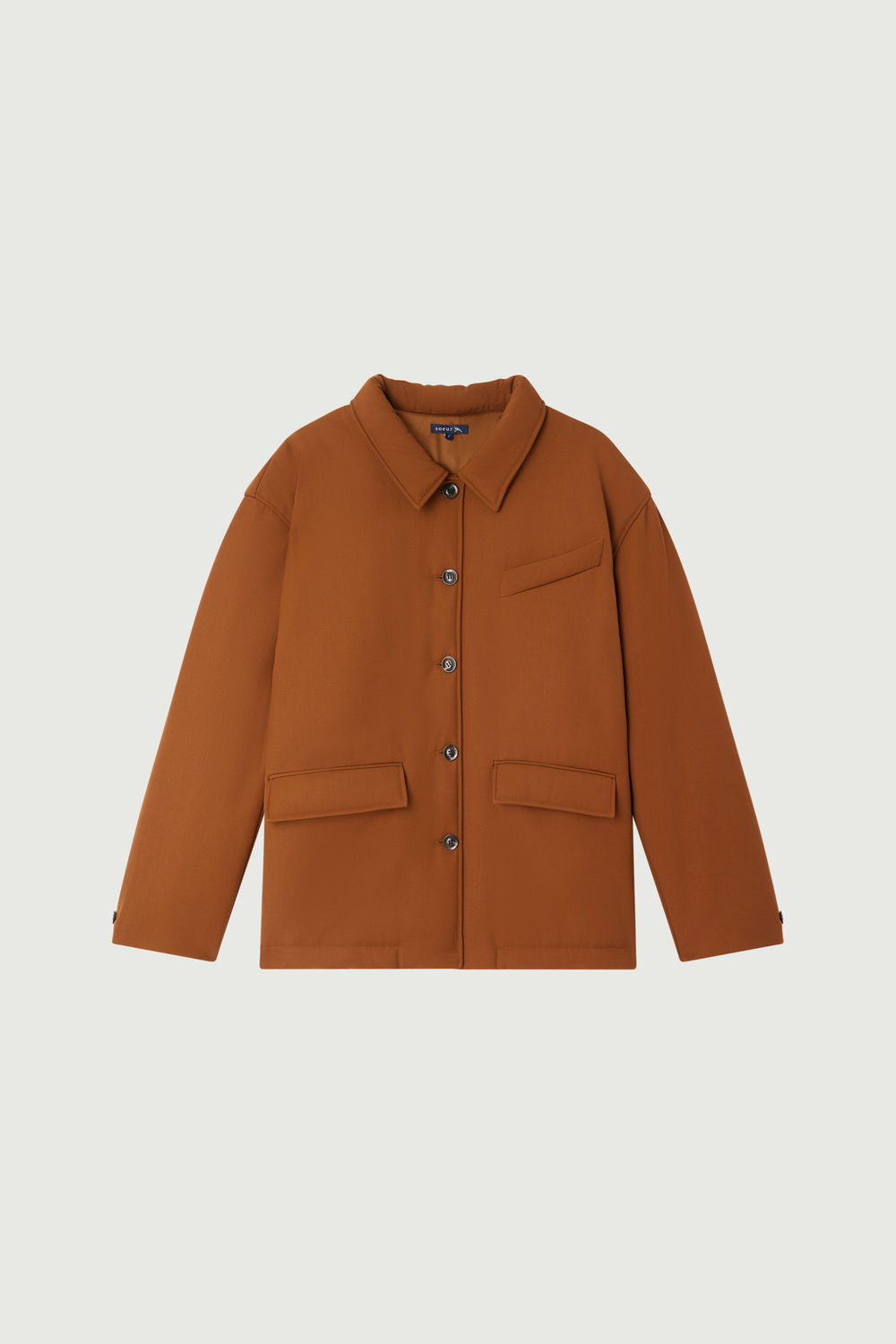 CATALOGNE is a quilted jacket crafted from wool gabardine. Combining comfort and warmth, it features a straight and loose fit, complete with meticulous details - classic collar and flap pockets, to offset the voluminous effect of the material.